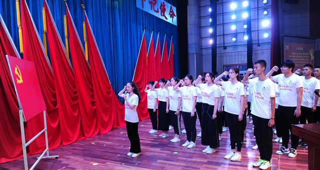 组织部副部长、党校办公室主任库文静带领50名新党员宣誓,全体老党员重温入党誓词。2017级教育科学学院应用心理学专业孙睿代表新党员作表态发言,她表示,一定要虚心向身边党员学习,提升自身能力,发挥学生党员带头模范作用,认真履行党员义务,成为一名合格的党员。