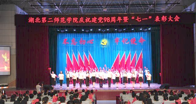 本网讯(见习记者田佳)6月27日下午,学校庆祝建党98周年暨“七·一”表彰大会在大礼堂隆重举行。全体在校校领导出席,全体教职工党员、学生党员代表参加。