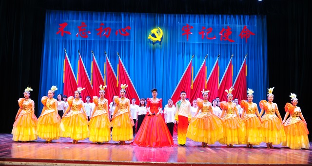 艺术学院教师袁渊一首原创歌曲《你是我的国》,为党的生日献礼。典礼在全场高唱《国际歌》中圆满结束。(编辑禾弋 摄影 忠强)